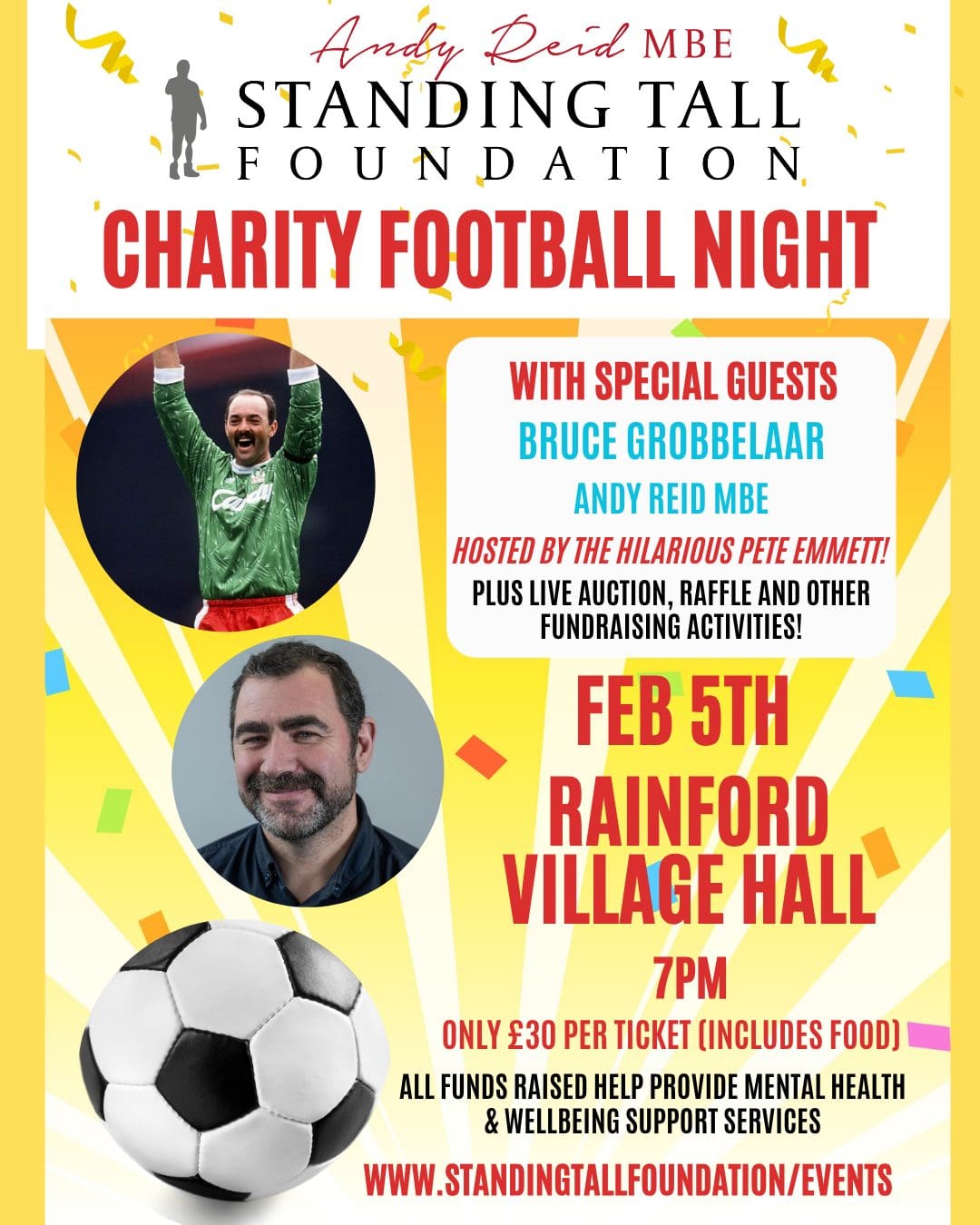 We are delighted to be holding a Charity Football Night on the 5th February at Rainford Village Hall.